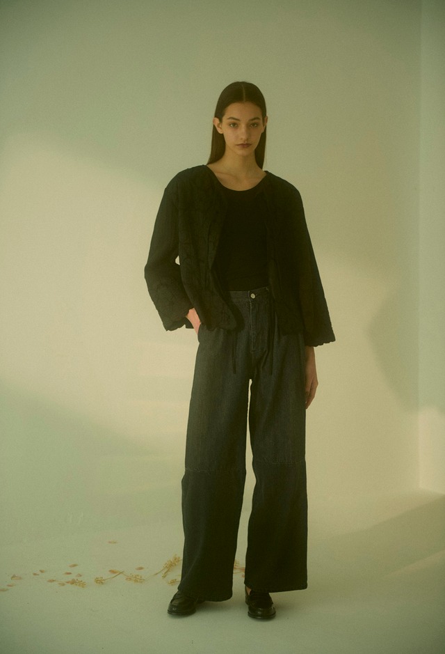 岡山で織り上げられたセルビッチデニムを使用しています。 ヴィンテージのような風合いで、長年着用していくうちに経年変化を楽しめる1着です。 裾と後ろのパッチポケットに微配色の生地を使用してバイカラーのデザインになっています。 バイオブリーチ加工を施しています。 程よいワイドなシルエットとタックがポイントです。 SIZE L:98 W:73 made in japan cotton 100% ※照明の関係により、実際よりも色味が違って見える場合があります。 またパソコン・スマートフォンなどの環境により、若干製品と画像のカラーが異なる場合もございます。 ※画像は、sampleの為、実際の商品と仕様や色味が異なる場合もございます。