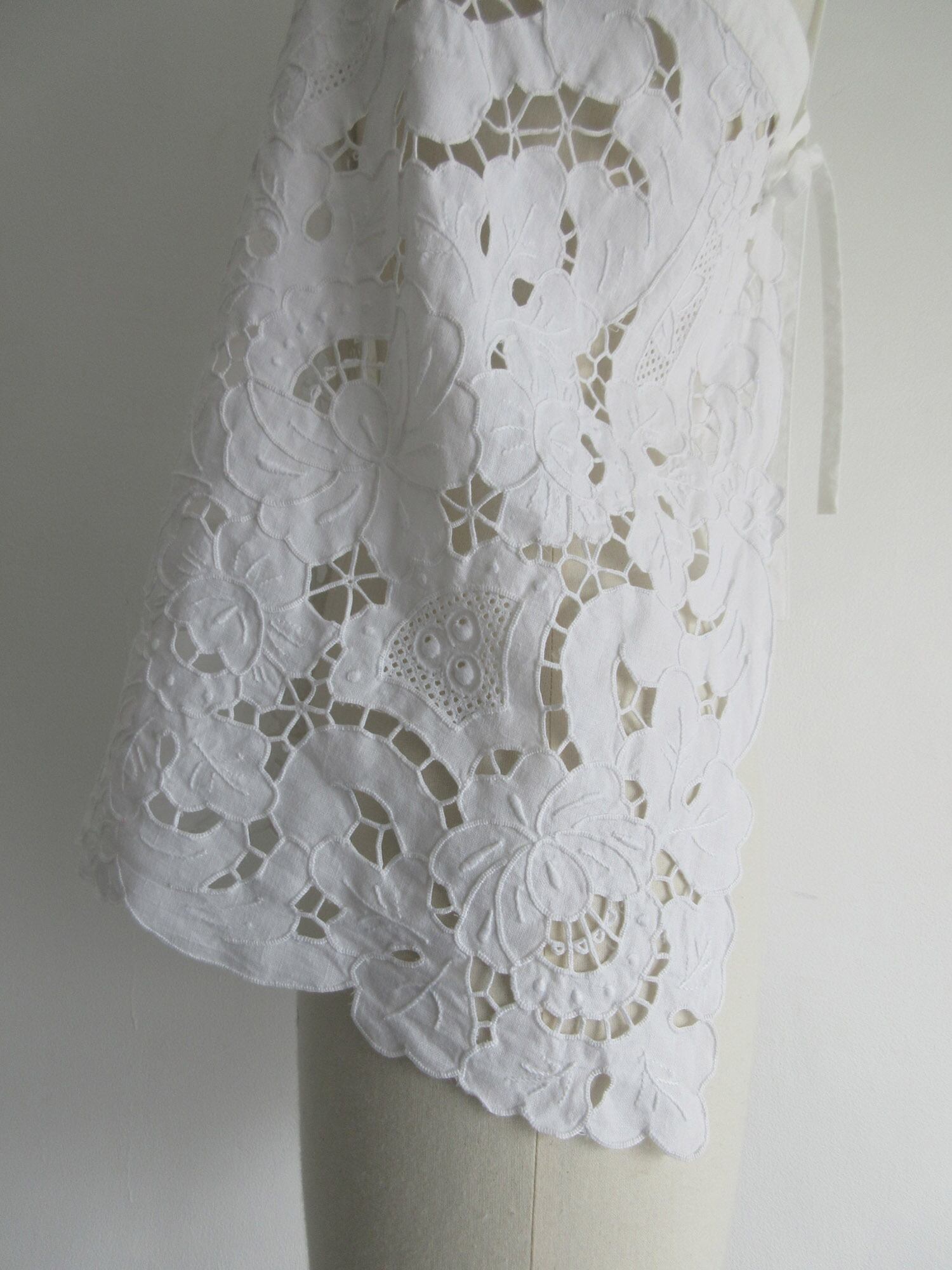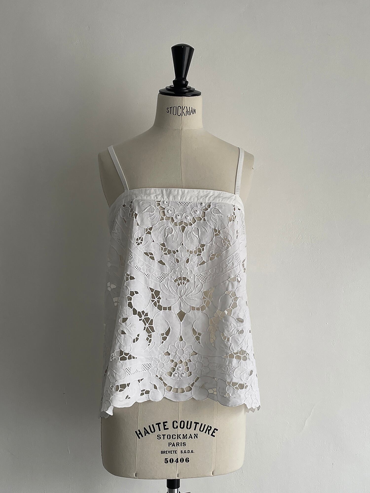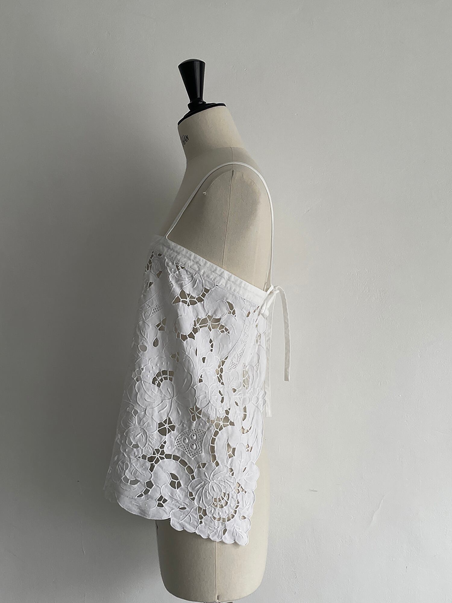 中国汕頭でヨーロッパ向けに作られていた、デットストックのカットワーク刺繍のテーブルクロスをリメイクしたキャミソールです。