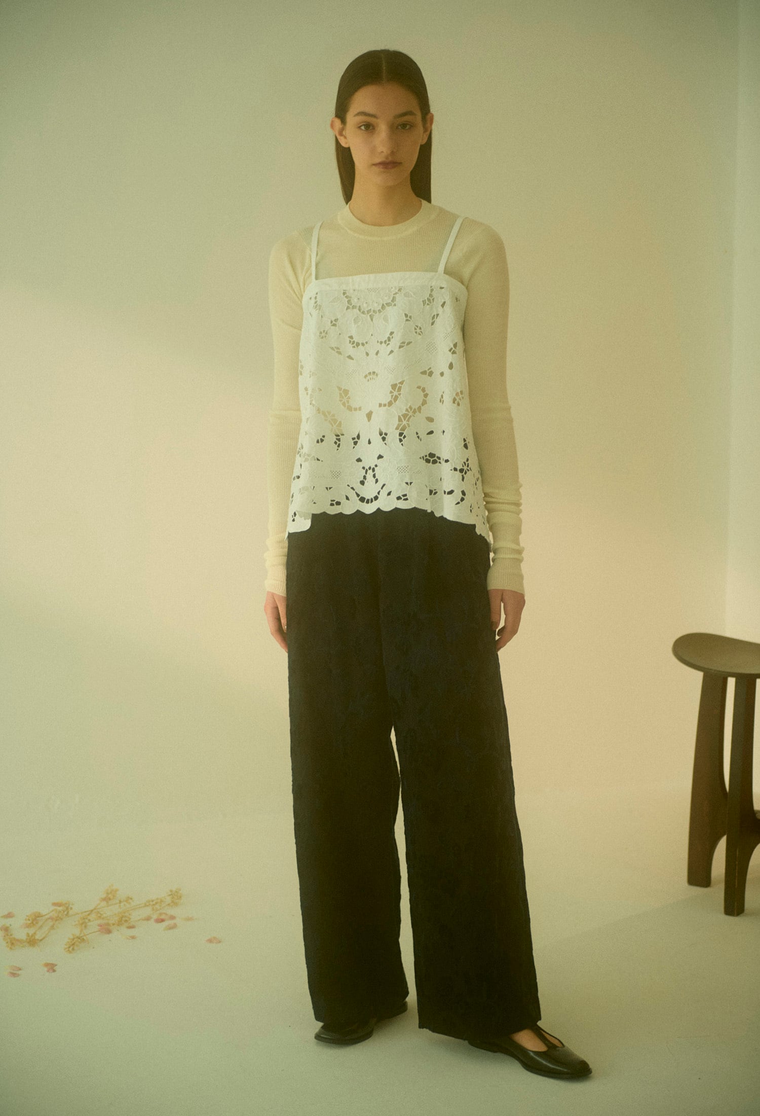 H0-00-3060 cutwork parts tablecloth camisole c/#000 white