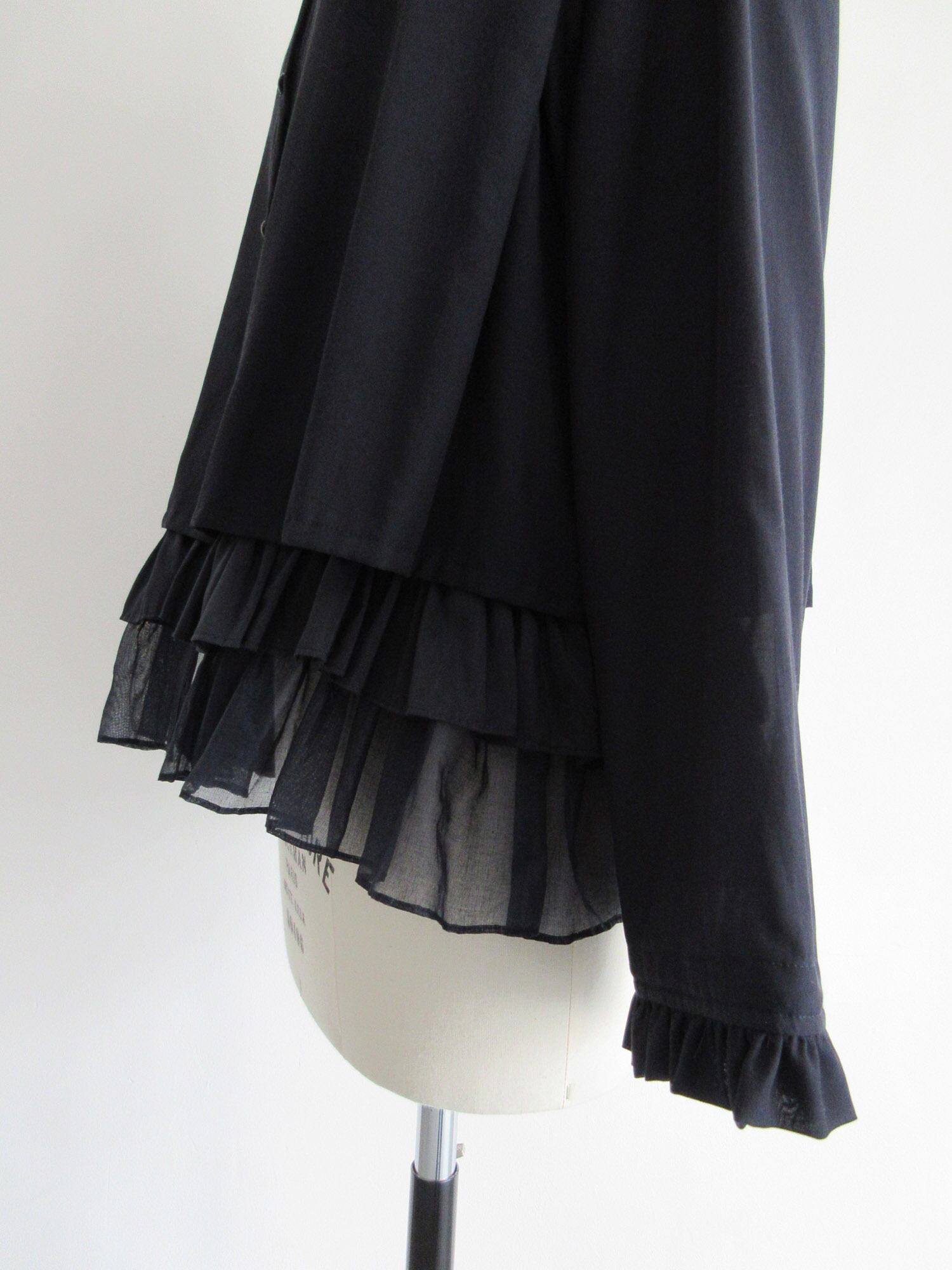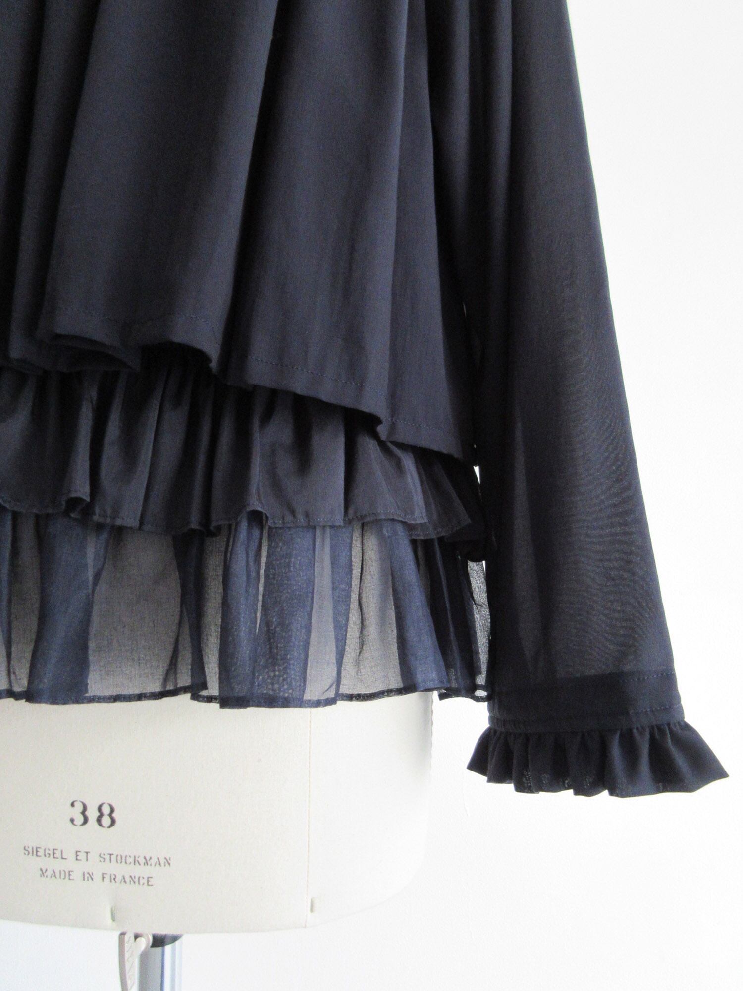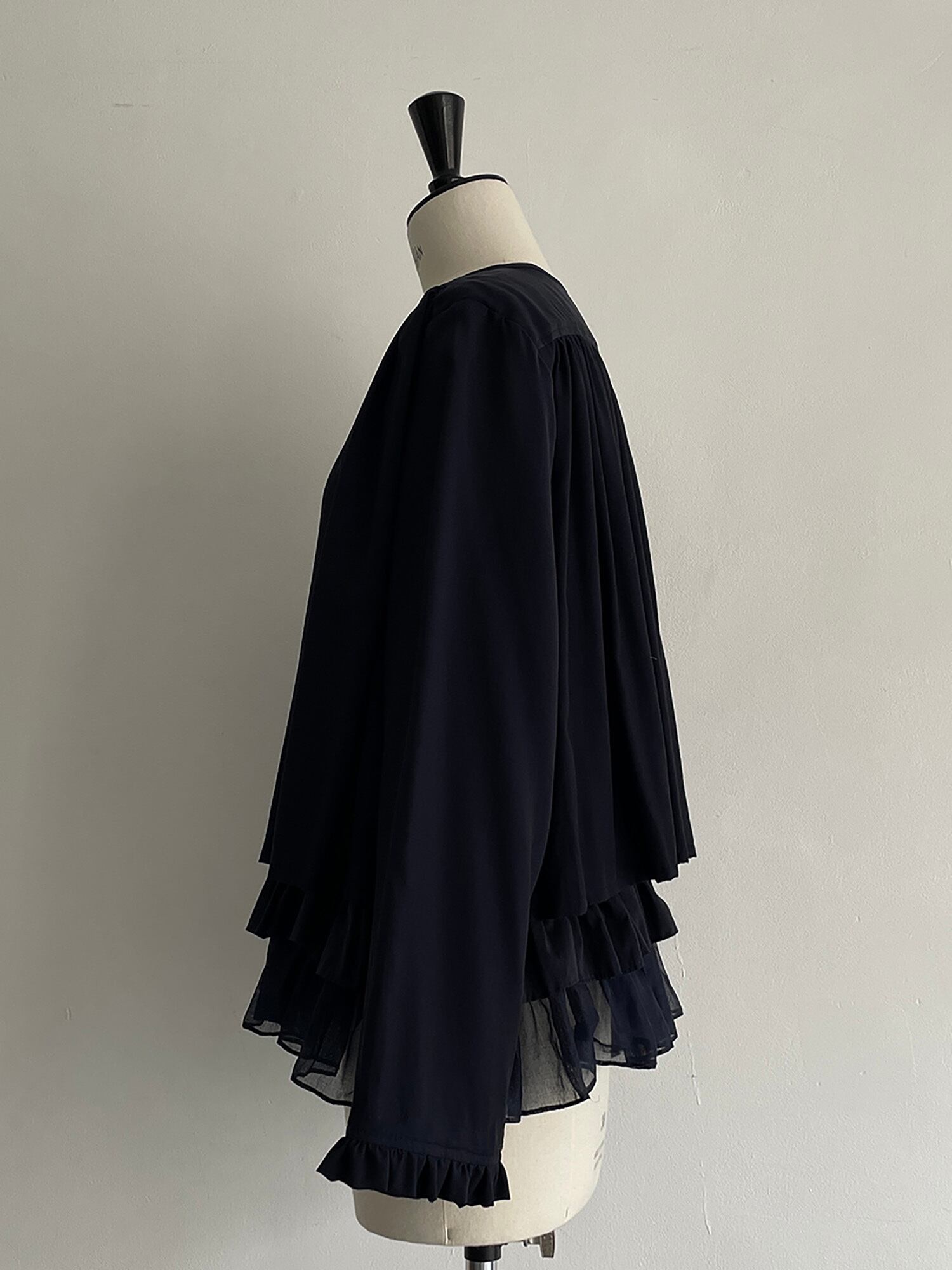キュプラコットンの生地をベースに、2種類の生地のフリルを裾にあしらった、ブラウスです。