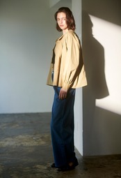 ブラウスのようにプルオーバーで着用しても、前あきで羽織としても着用できます。