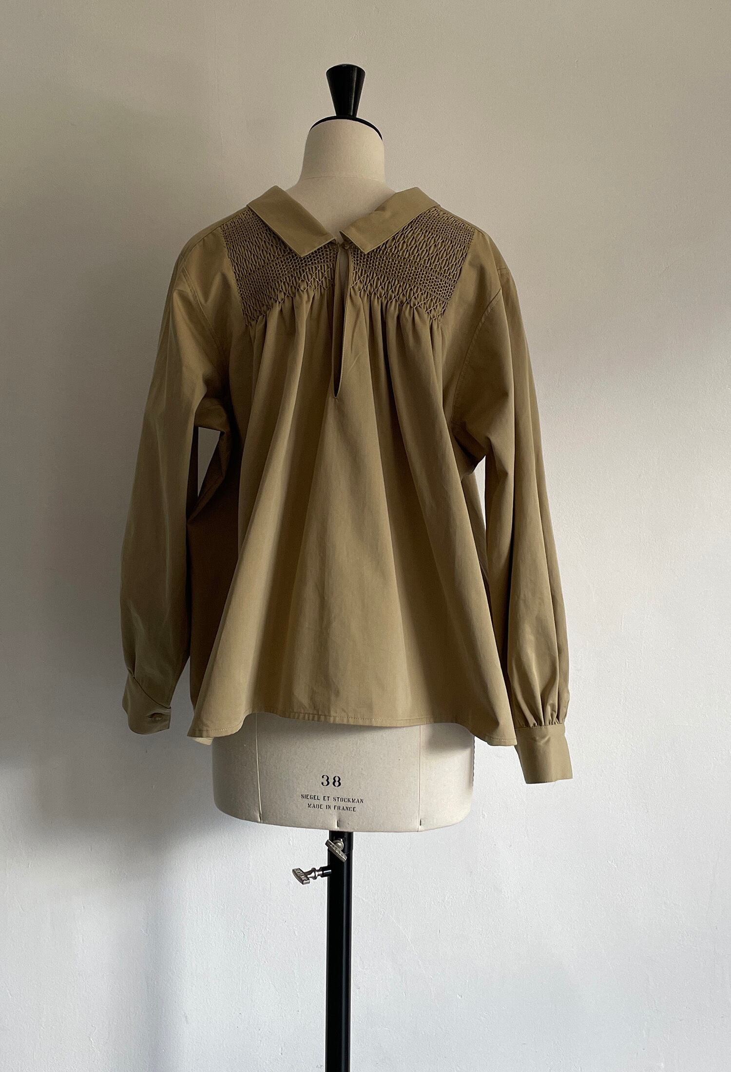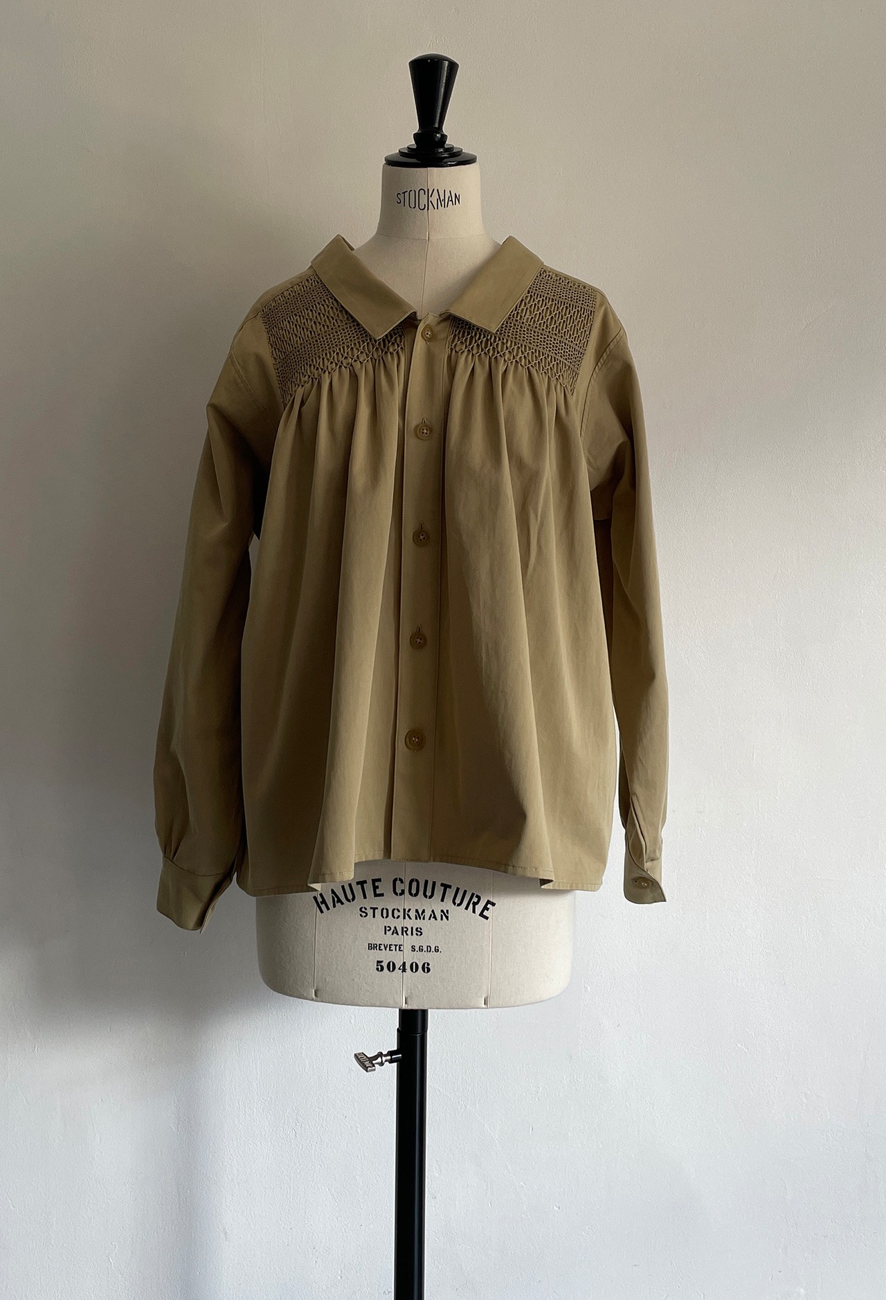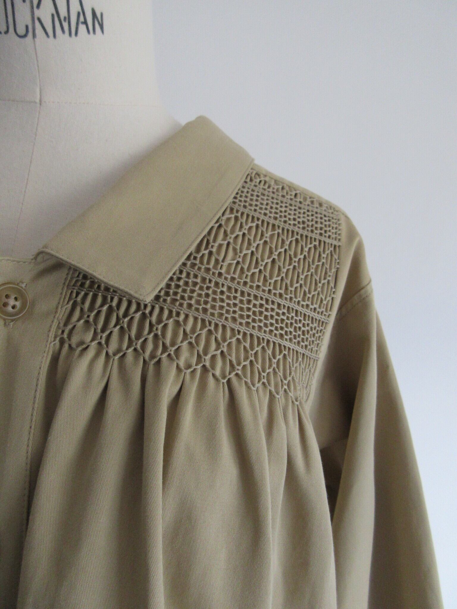 ハンドスモッキングならではの立体的なギャザーが特徴的です。