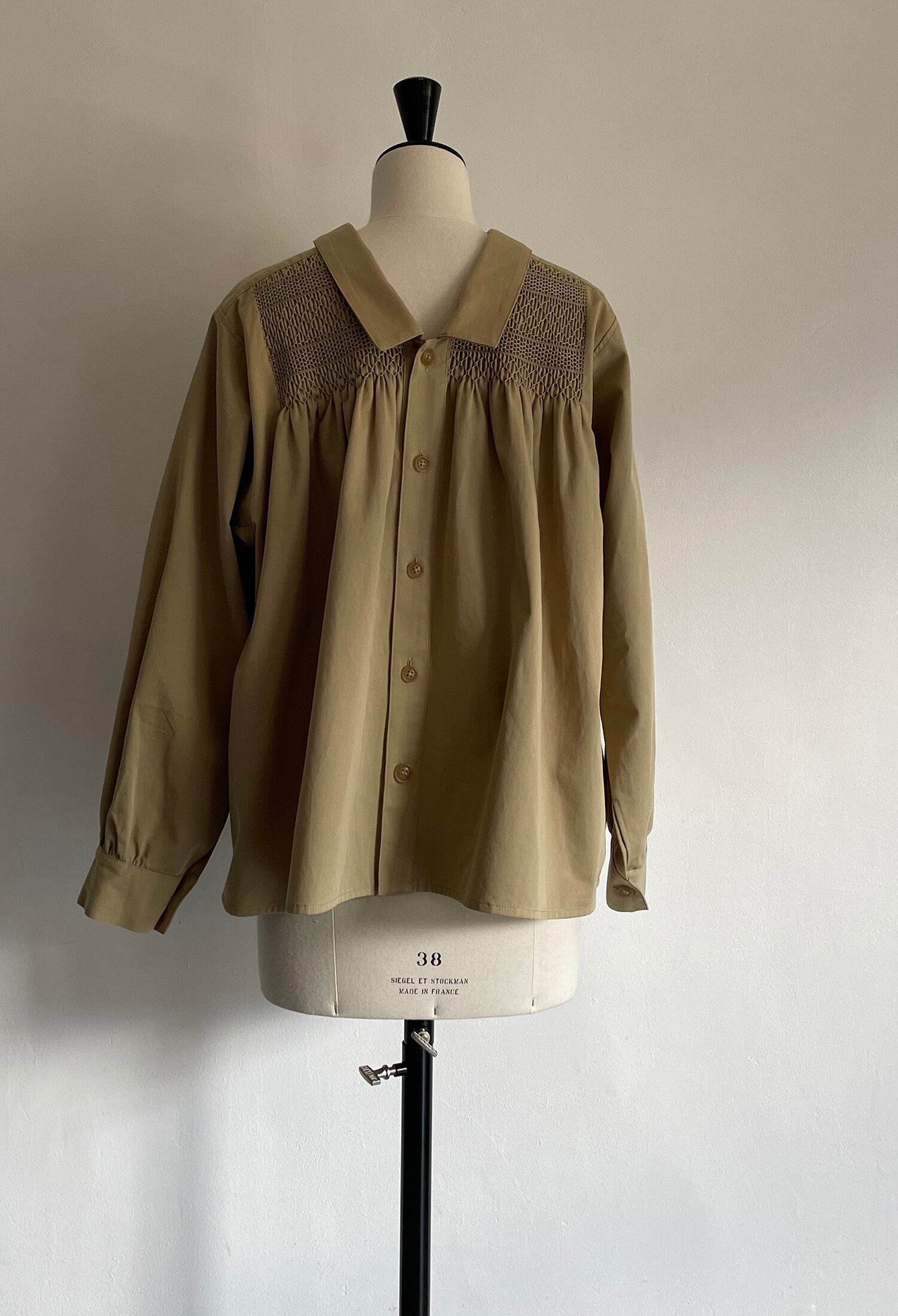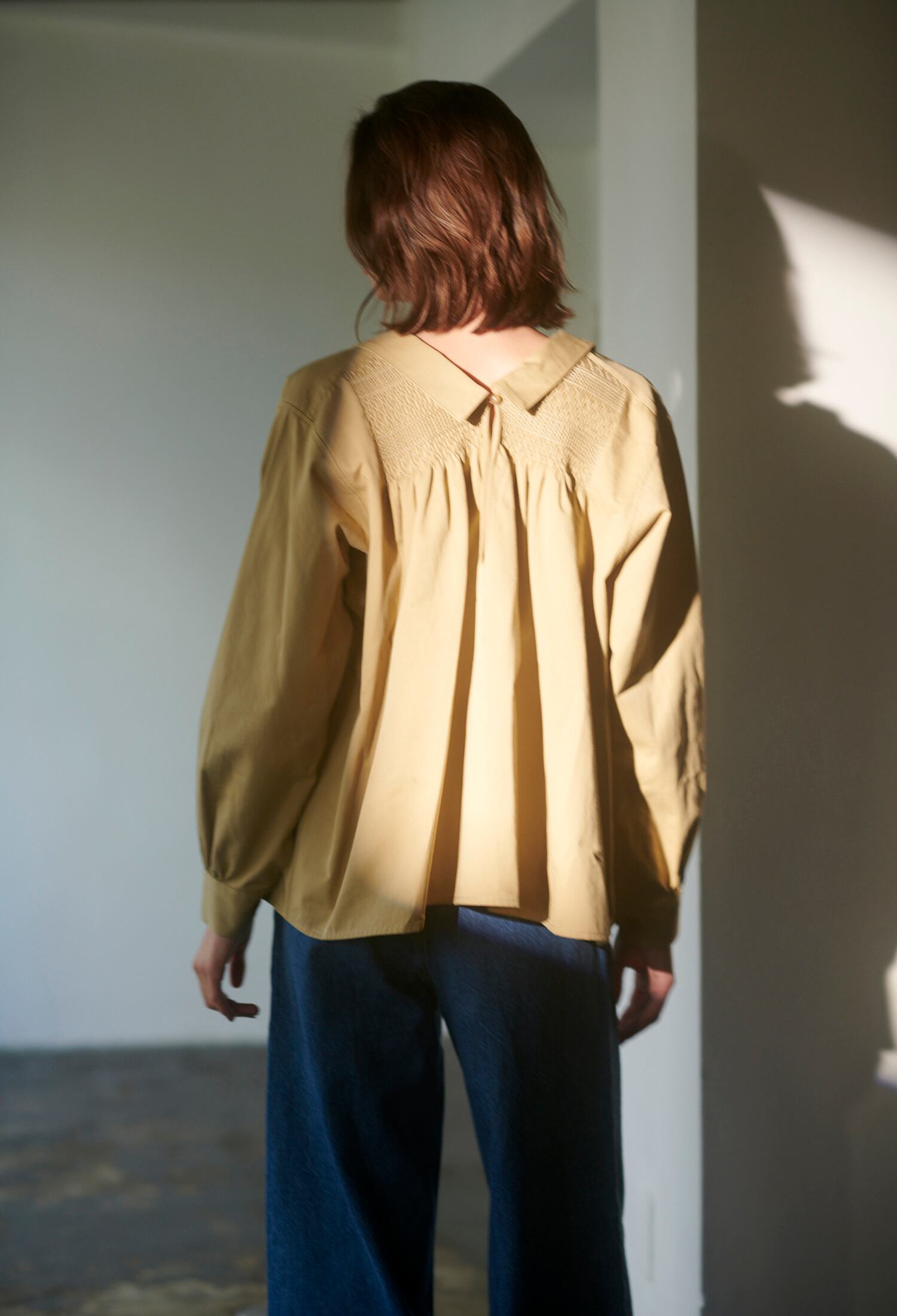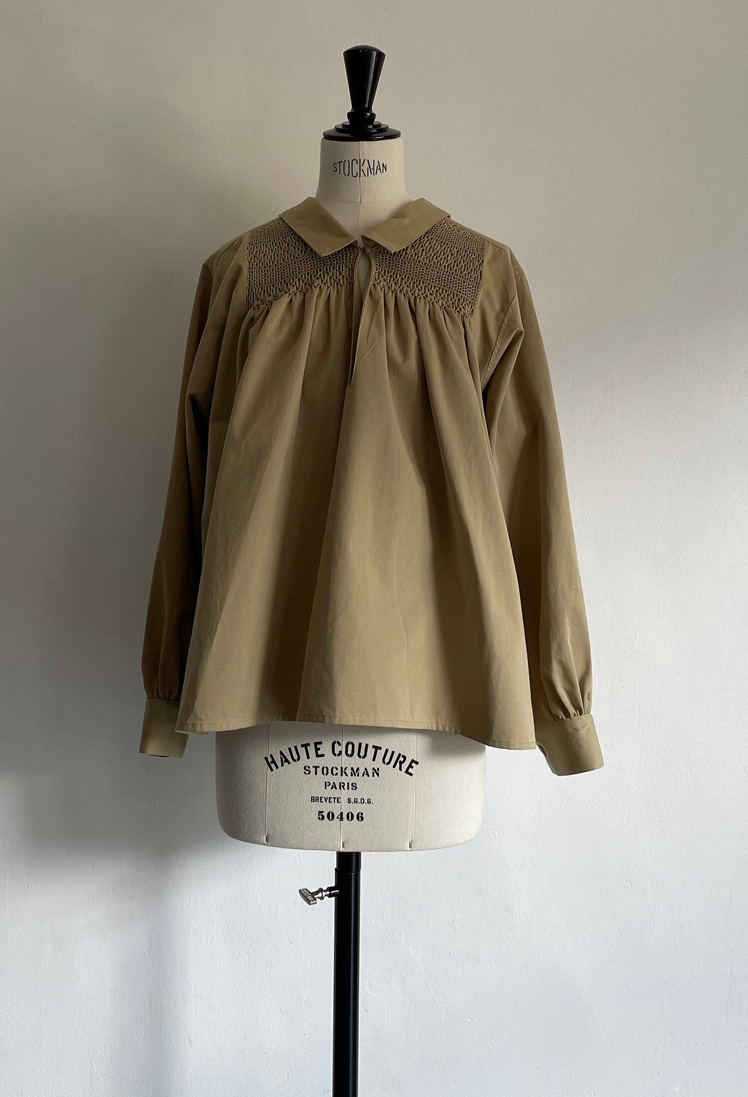 ハンドスモッキングならではの立体的なギャザーが特徴的です。