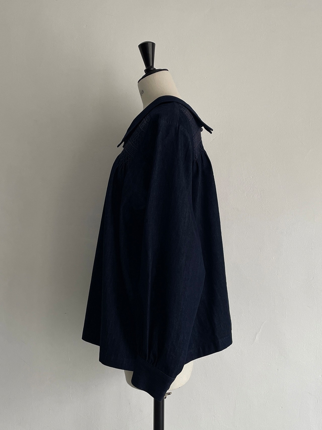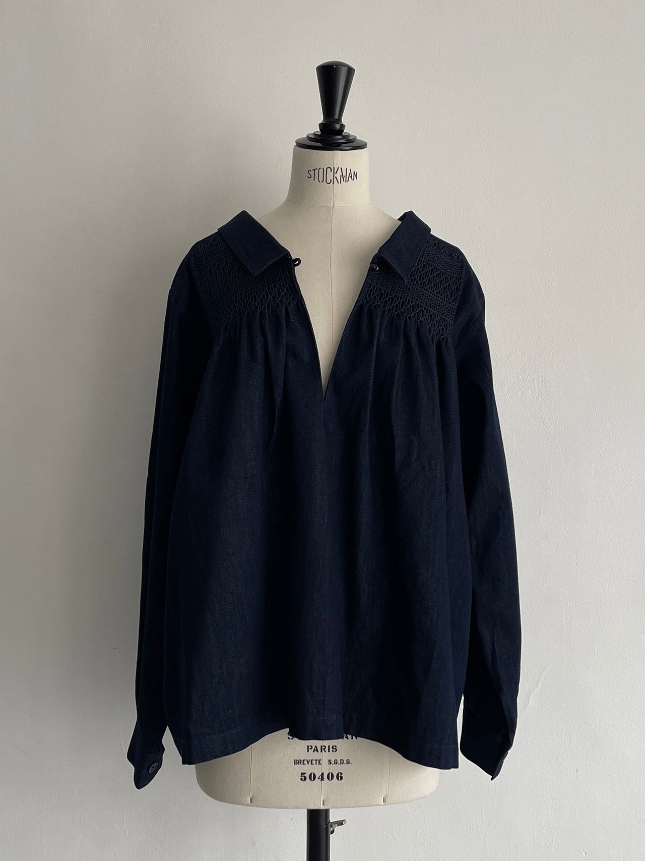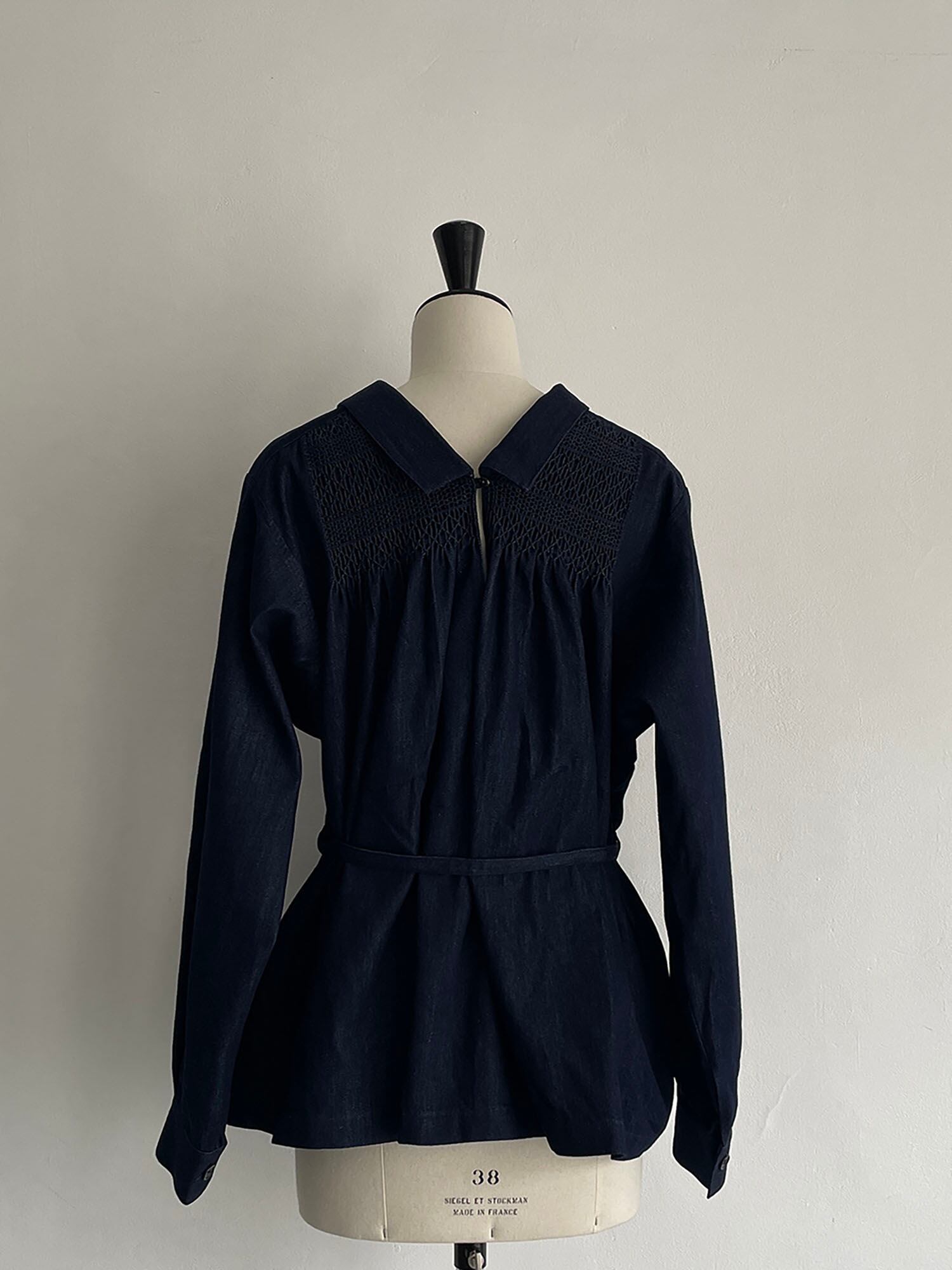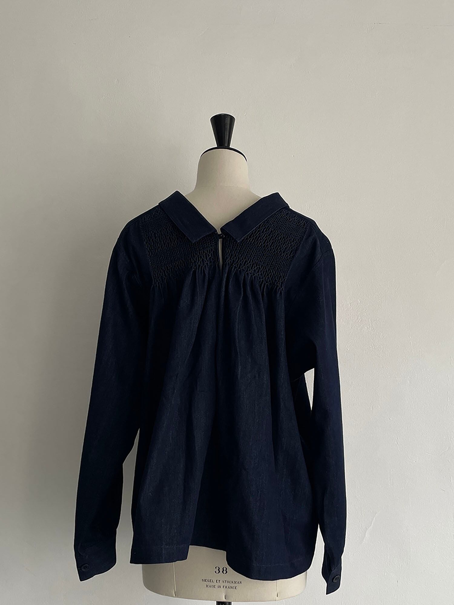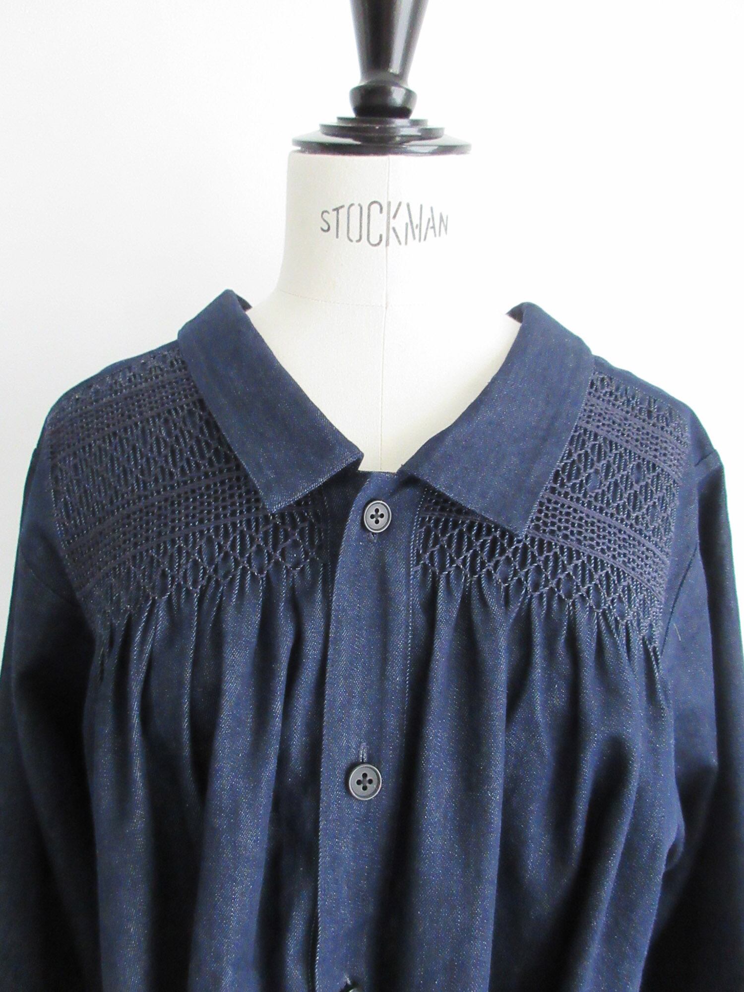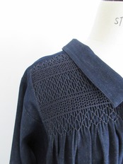 ハンドスモッキングならではの立体的なギャザーが特徴的です。