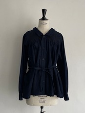 ブラウスのようにプルオーバーで着用しても、前あきで羽織としても着用できます。