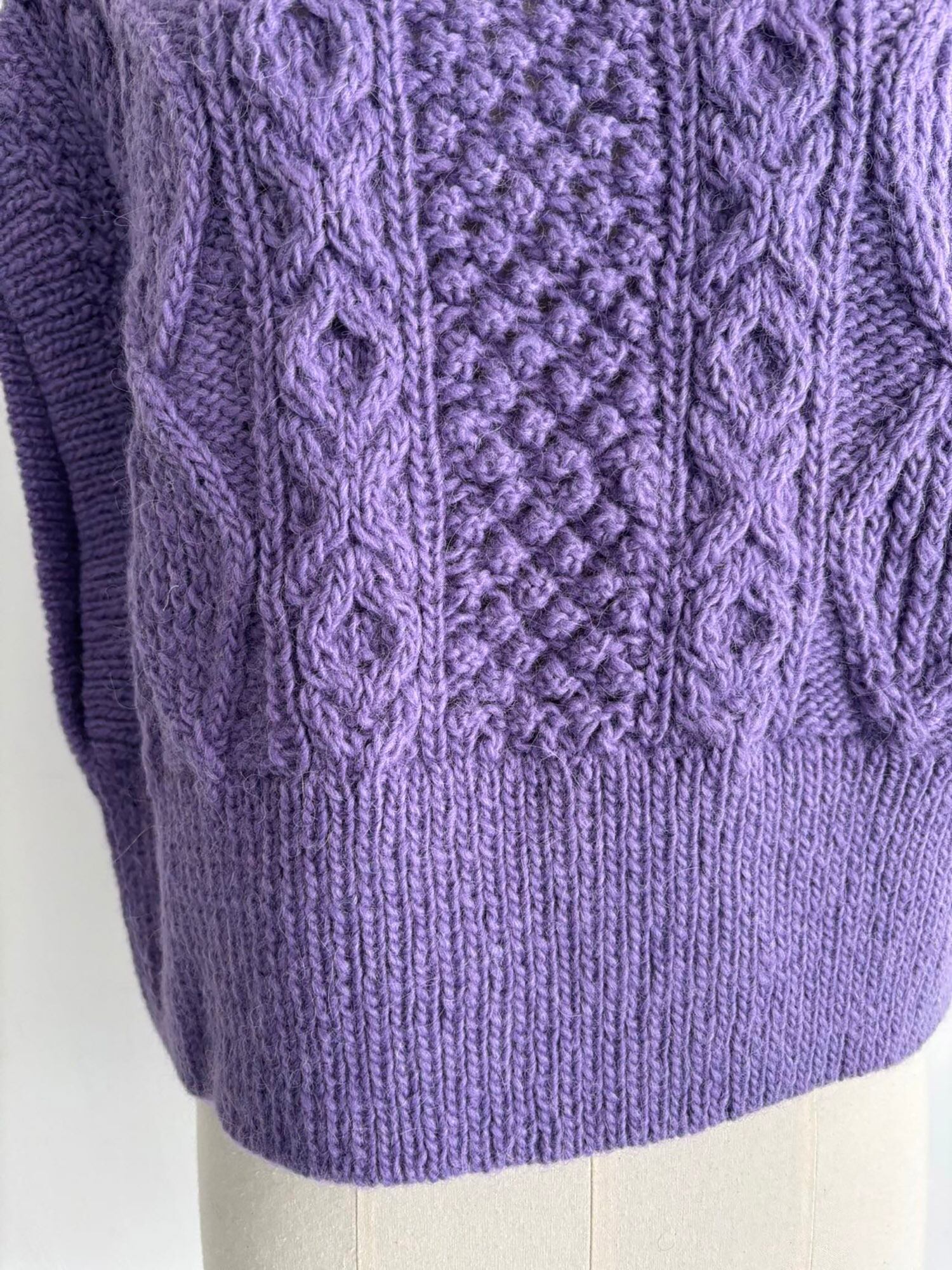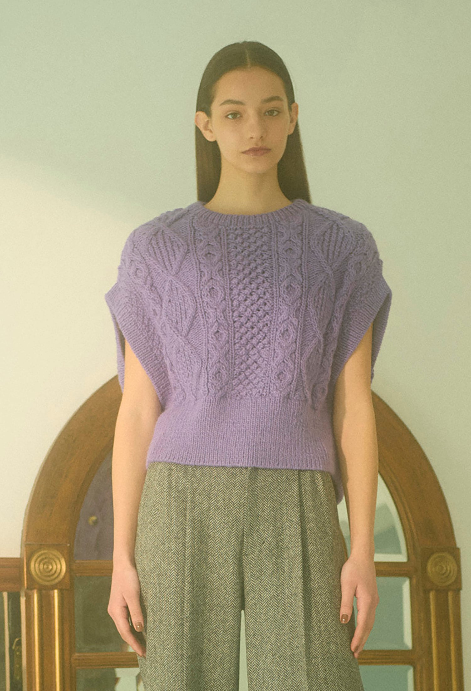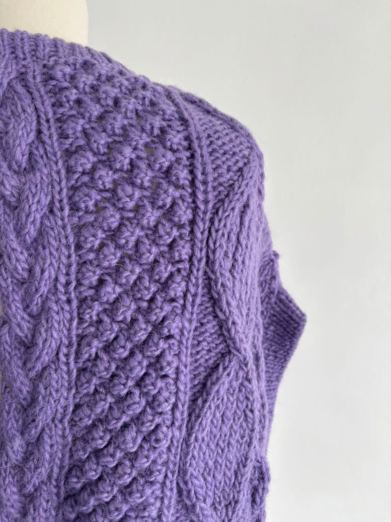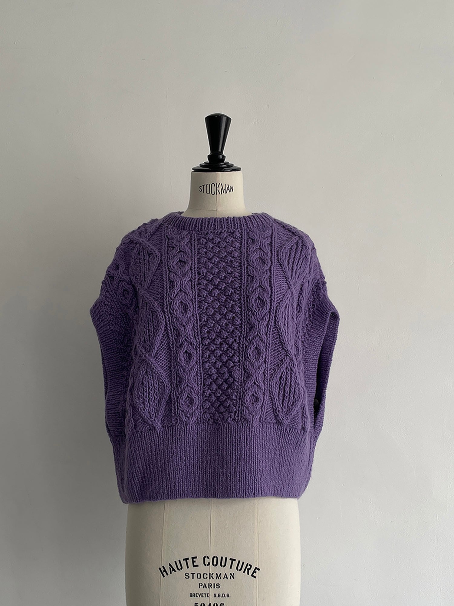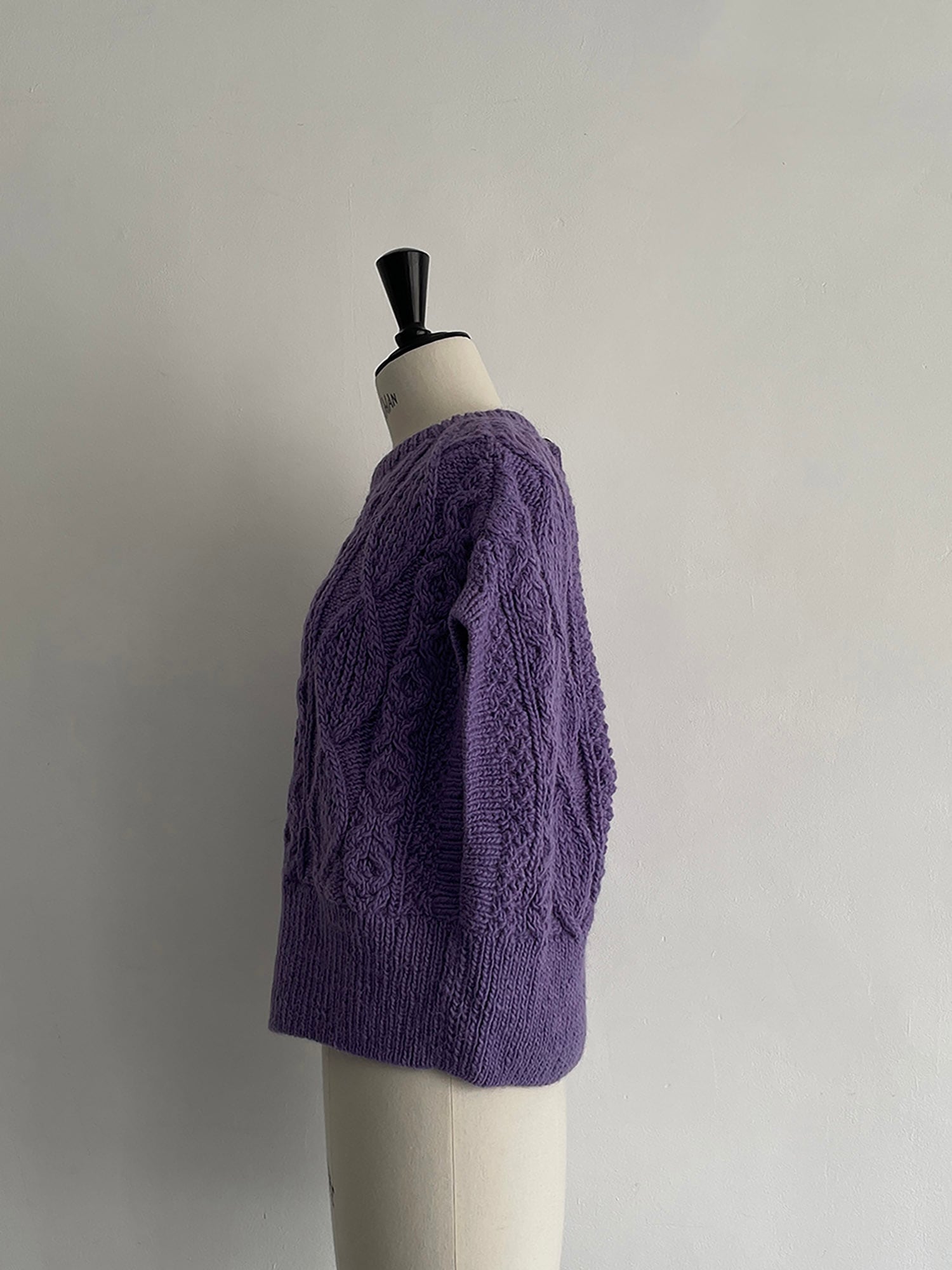 柔らかな肌触りの手紡ぎのアルパカ混糸を使用し、柔らかな肌触りの手紡ぎのアルパカ混糸を使用し、オリジナルのアラン柄で編み上げています。