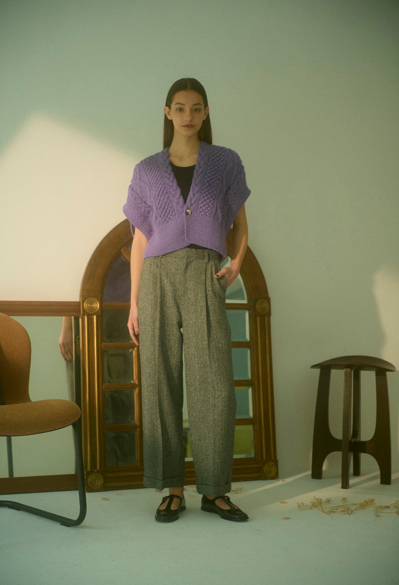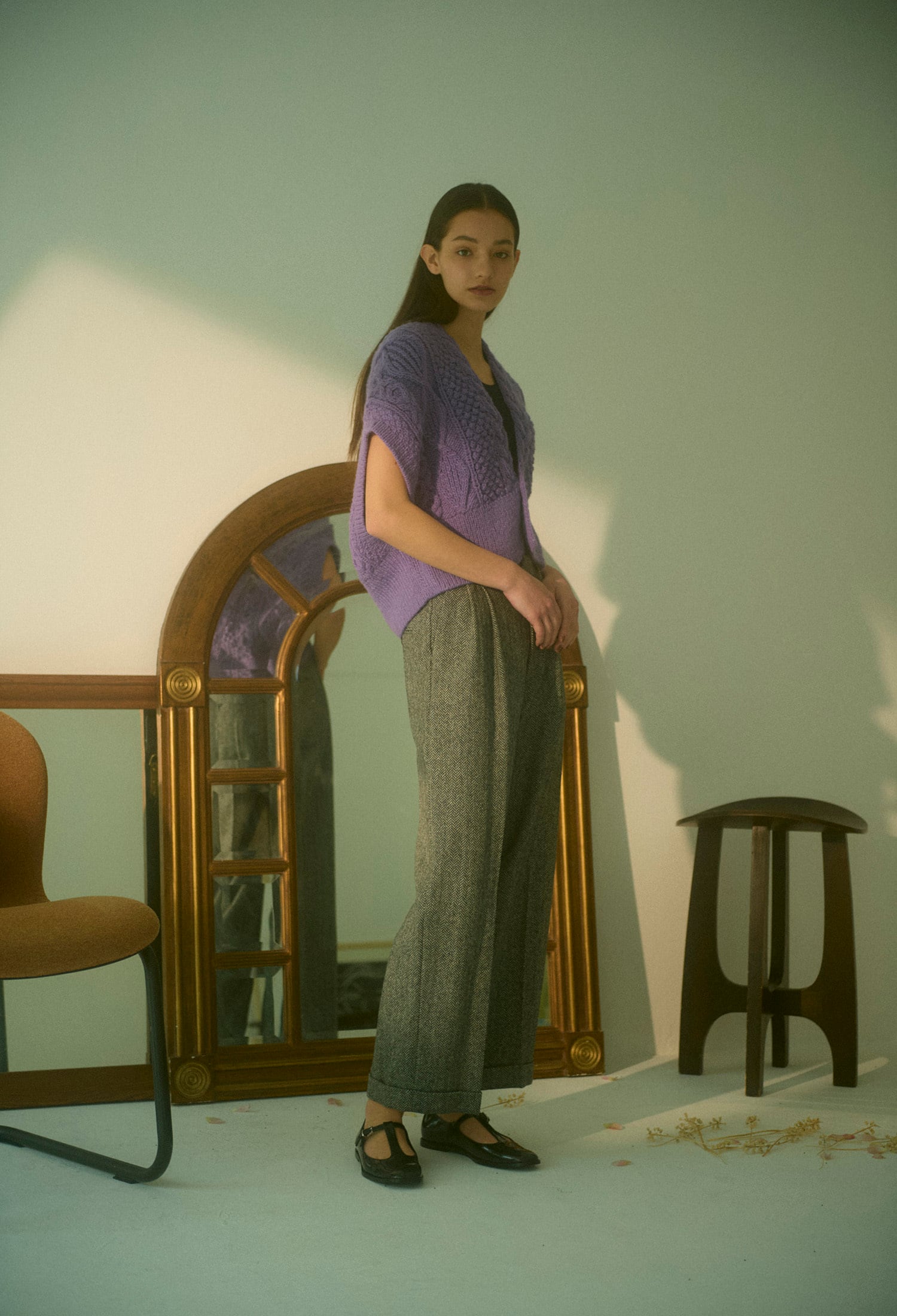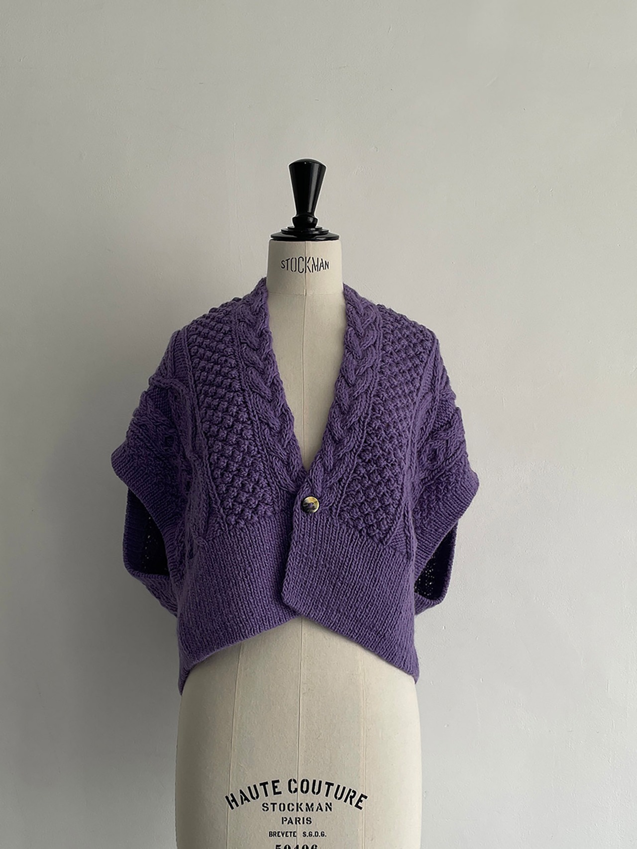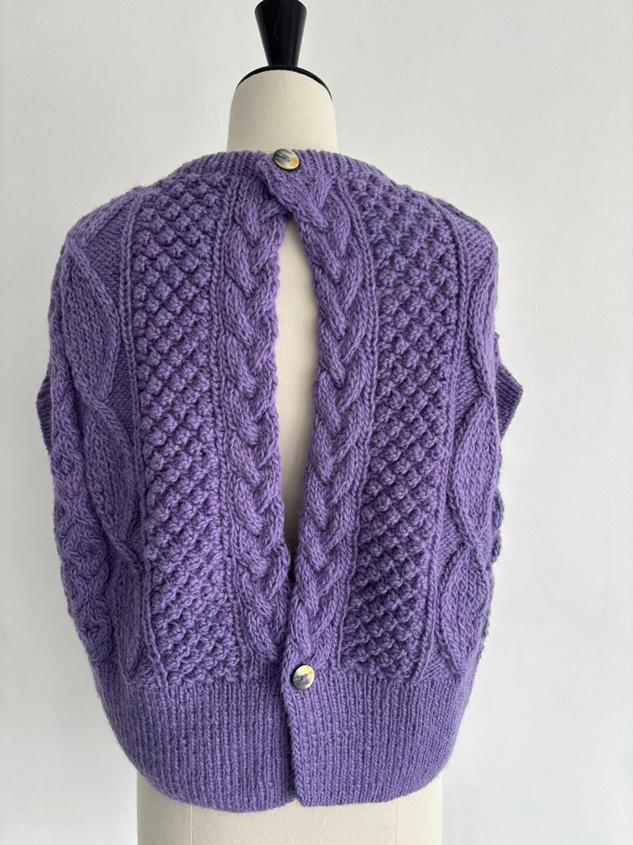 衿ぐりを後ろにずらす事で、ショート丈のV明きベストとしても着て頂けます。