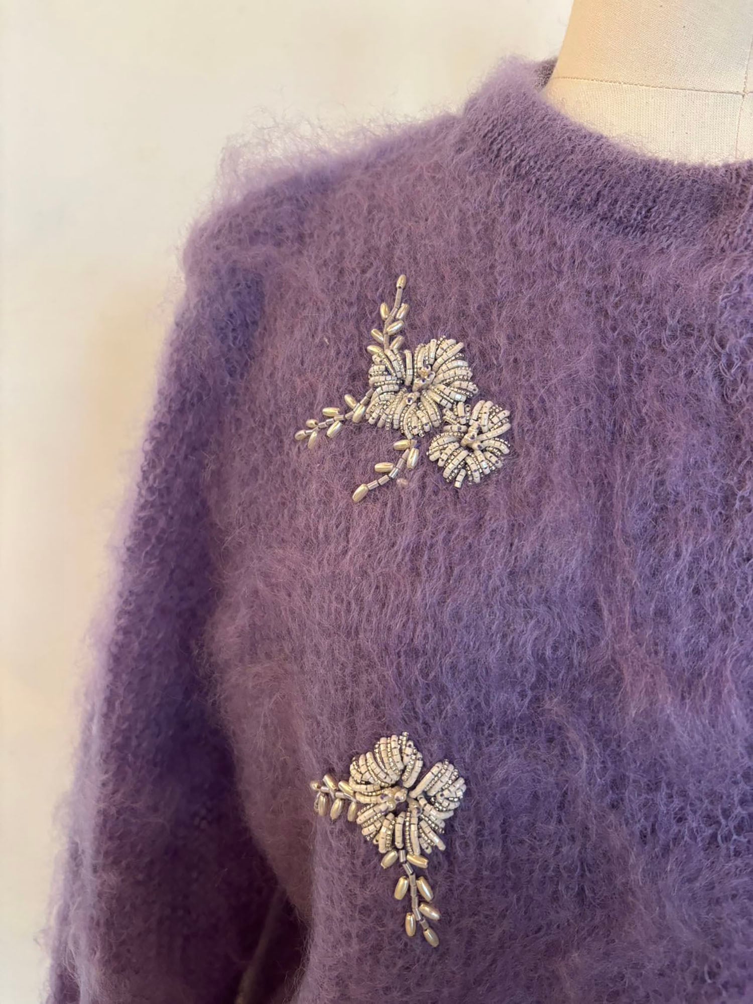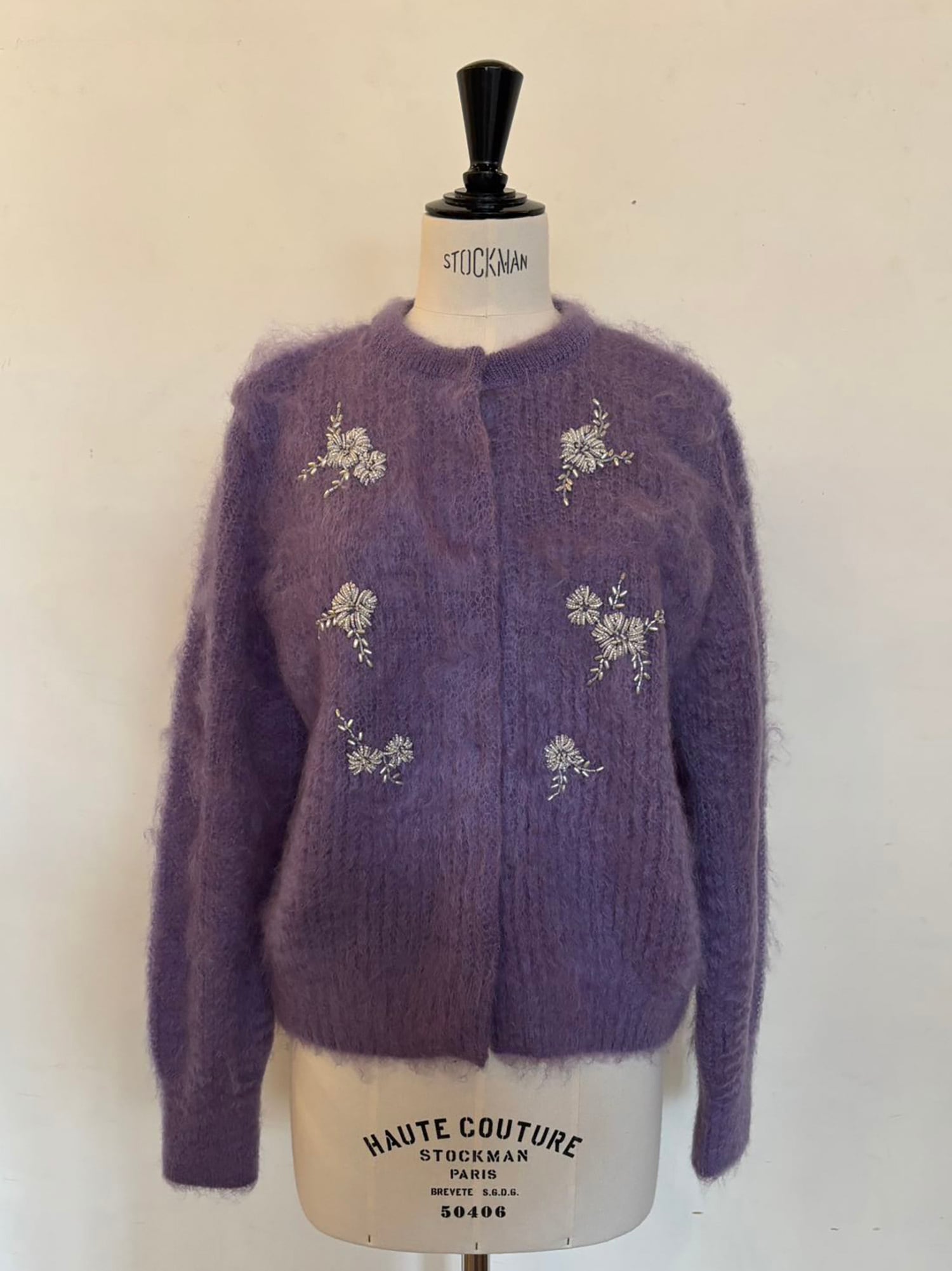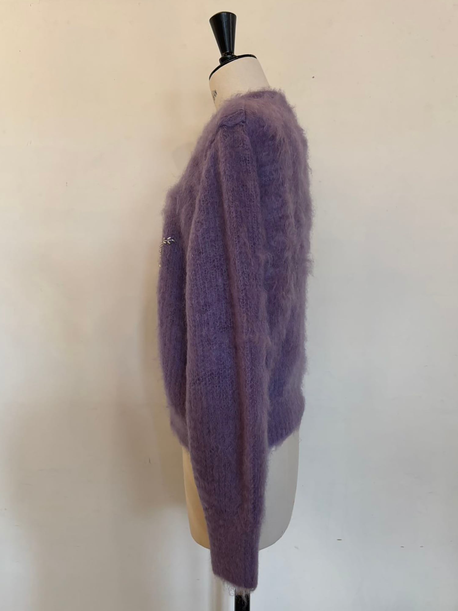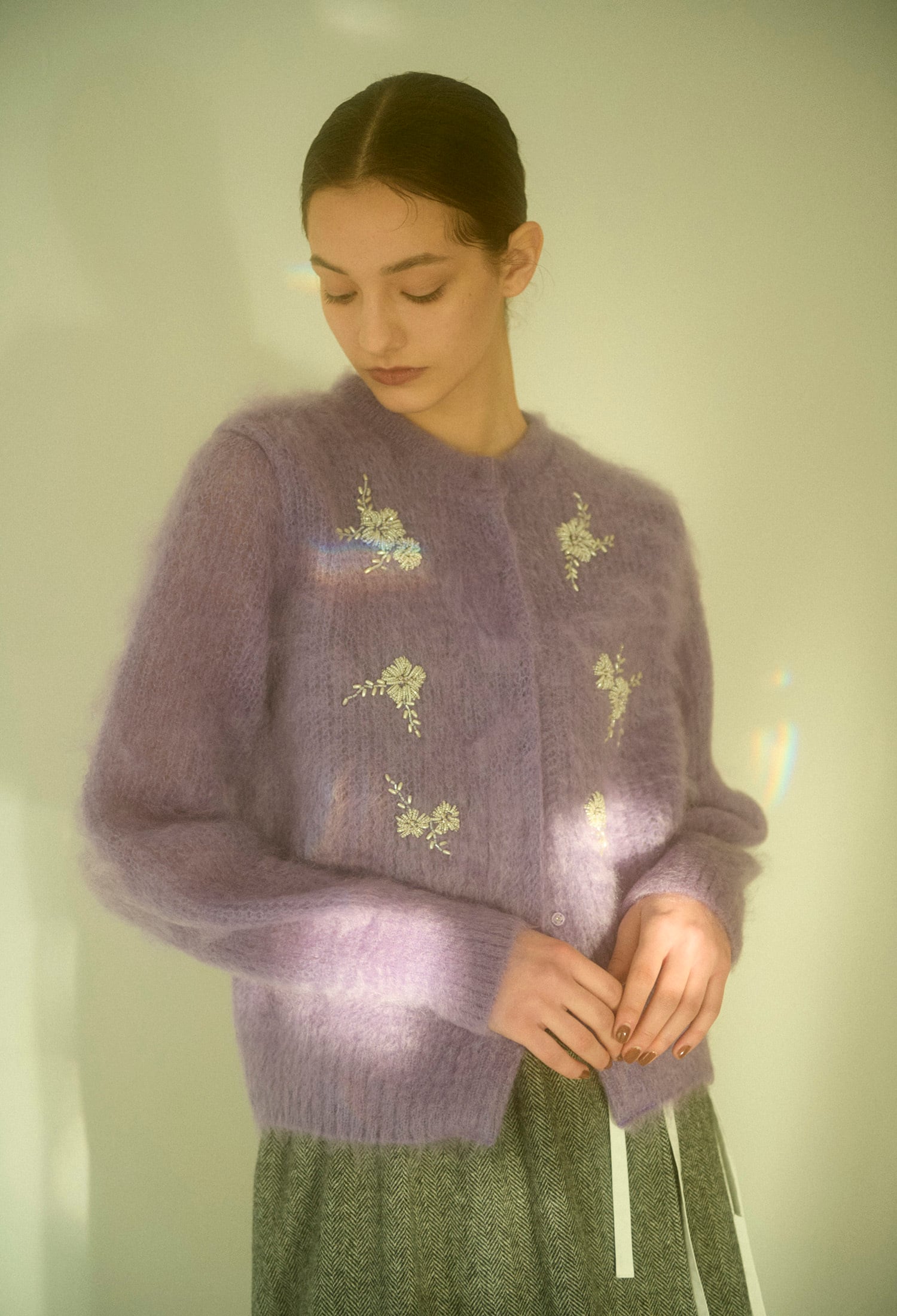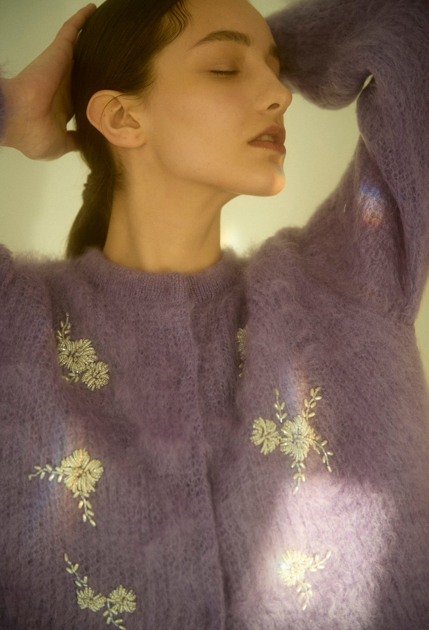 H0-00-1004 beads embroidery mohair cardigan c/#060 lilac