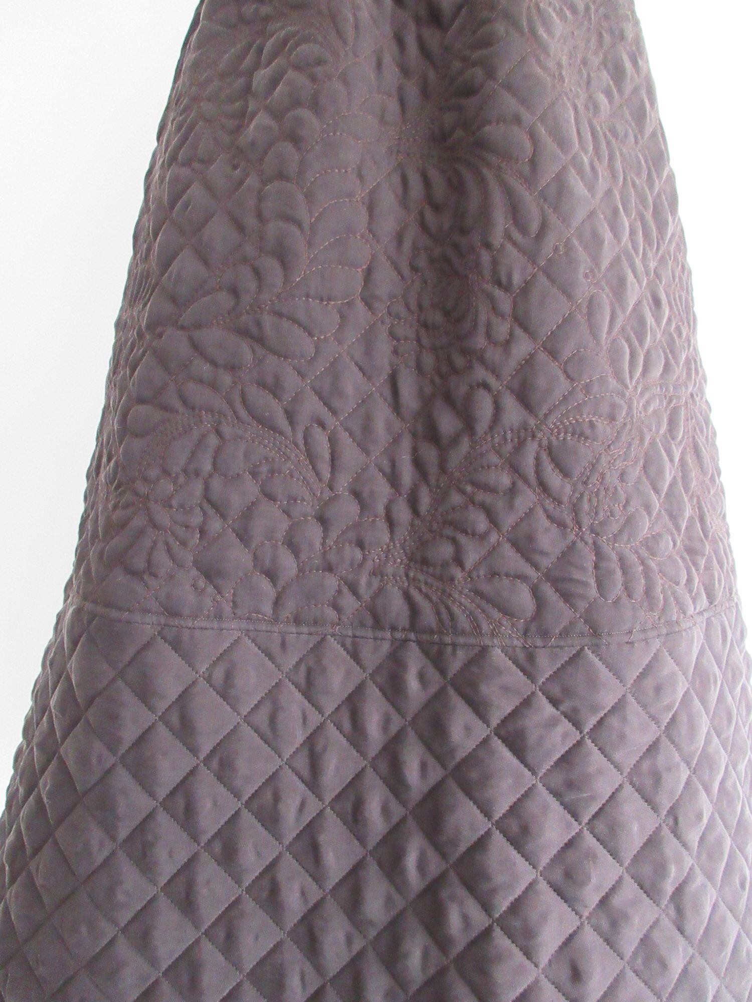 オリジナルの図案で、キュプラの生地に中わたをサンドして刺繍を施したキルトコートです。